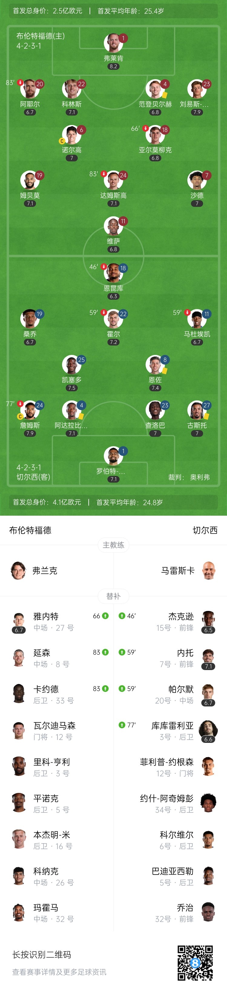 全场比赛结束,最终切尔西0-0布伦特福德。
