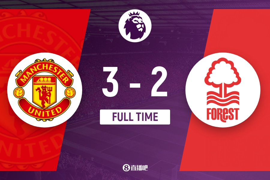 全场比赛结束,曼联3-2逆转诺丁汉森林。