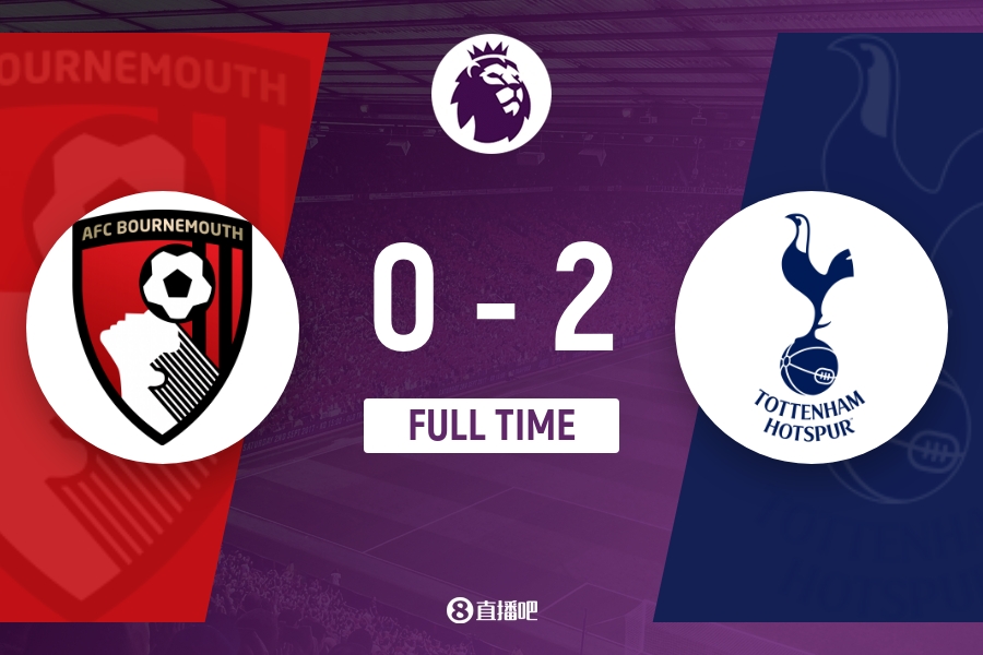 全场比赛结束,热刺客场2-0击败伯恩茅斯。