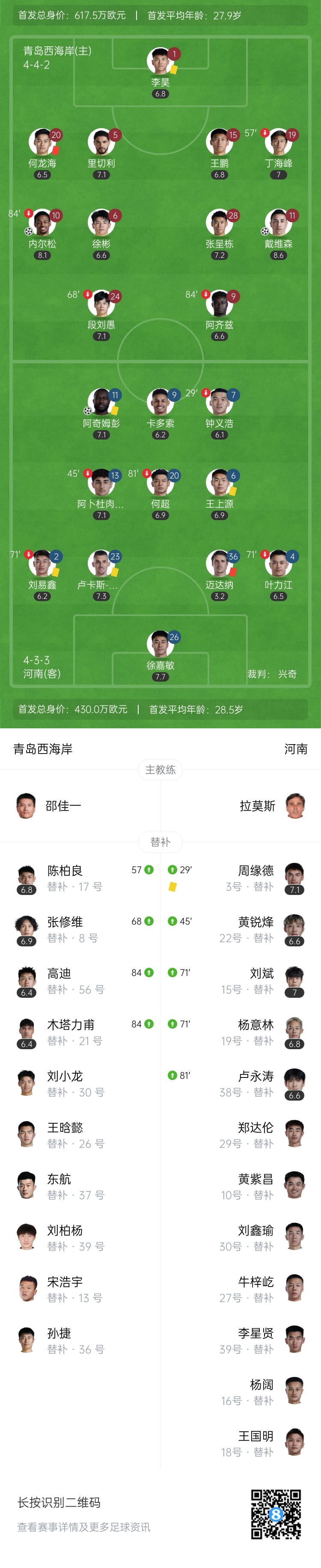 第32分钟,何龙海边路套上,一记精彩的弧线球传中,小禁区内后点内尔松抢点破门!青岛西海岸2-1再次领先河南↓