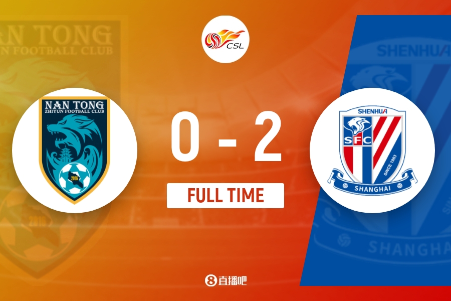 全场比赛结束,申花2-0南通支云。