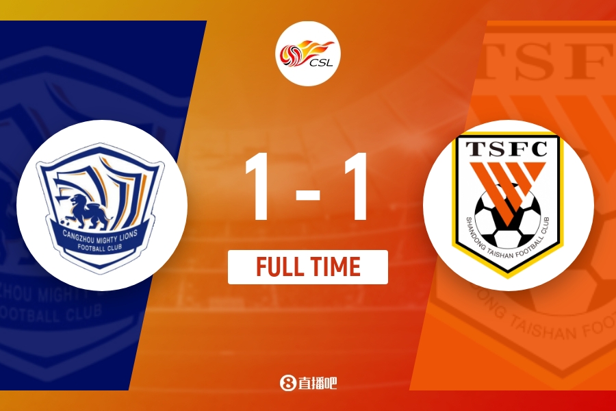下半场补时5分钟,沧州1-1山东泰山。