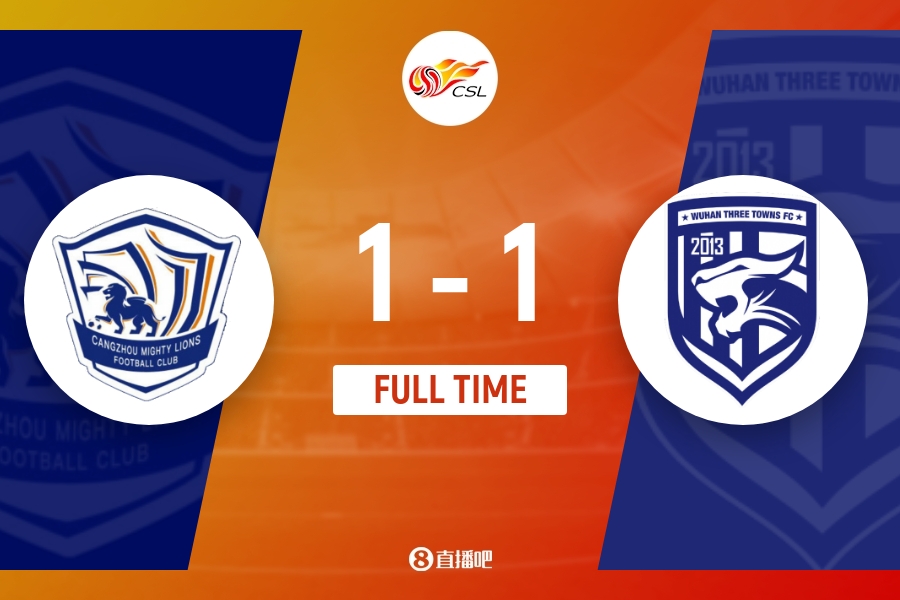 全场比赛结束,沧州雄狮1-1武汉三镇。