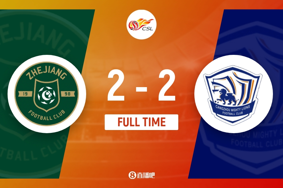 下半场补时10分钟。最终全场比赛结束,浙江2-2沧州。