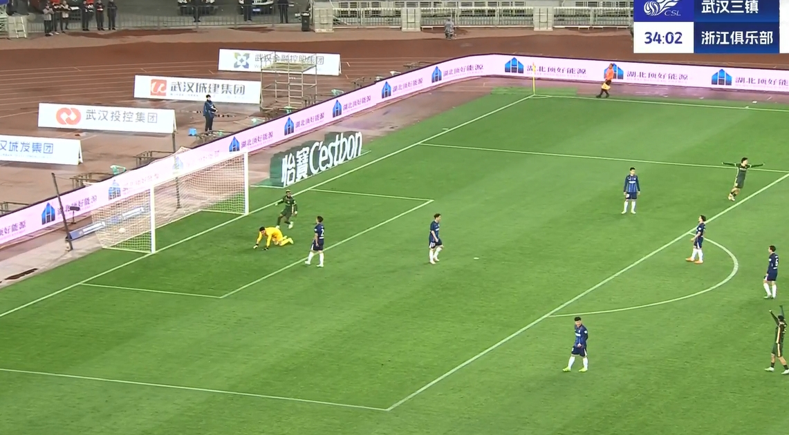 第35分钟,武汉三镇后场防守形同虚设,奥乌苏再次送出助攻,布彭扎轻松破门完成梅开二度,浙江队3-0领先↓