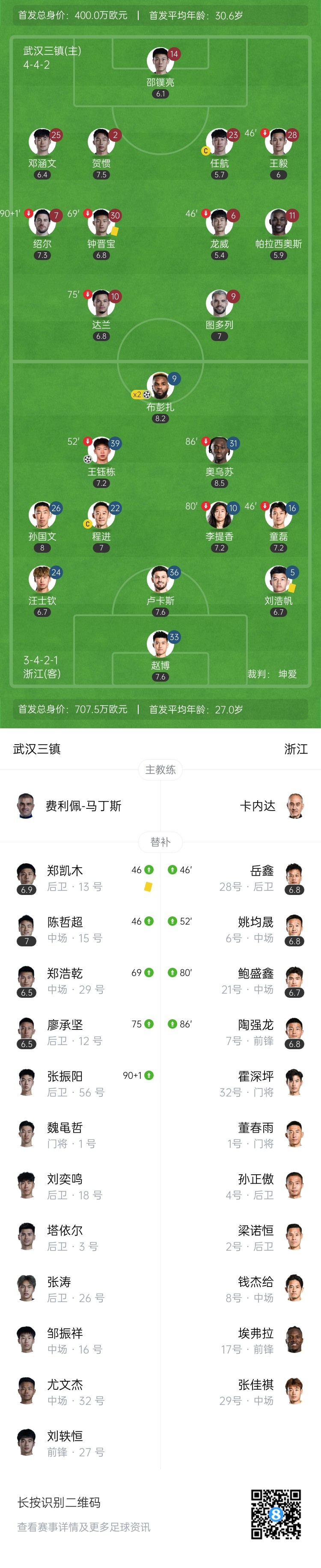 【双方首发及换人信息】