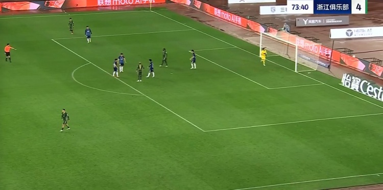 第74分钟,浙江队左路岳鑫突破横传弧顶,皮球漏过前点两人,布彭扎反应不及没做好准备,仓促起脚打门放了高射炮↓
