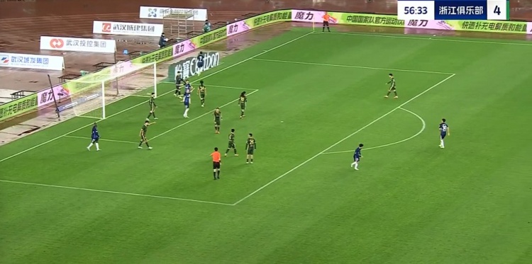 下半场补时8分钟。最终全场比赛结束,武汉三镇0-4浙江队。