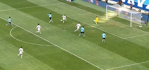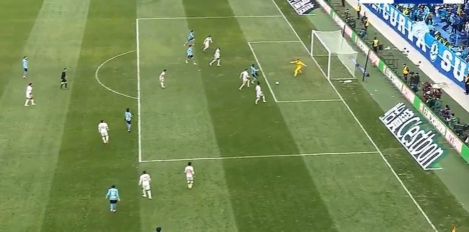 第14分钟,亚泰左路玄智健下底传到禁区徐越门前头球顶偏了。↓