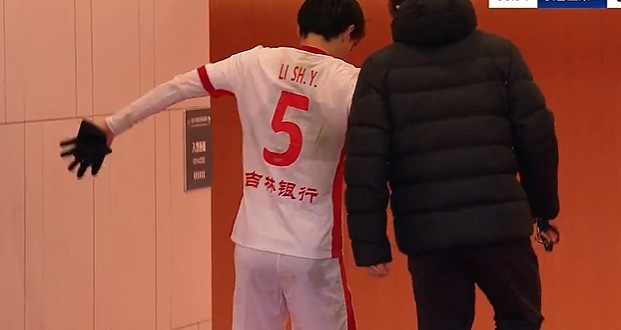 第38分钟,谭龙拼抢中受伤倒地被担架抬出场外,同时李申圆受伤坚持不住回更衣室。↓