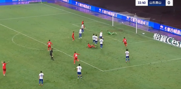 第25分钟,山东泰山的球网出现问题,比赛因此暂停一小会。↓