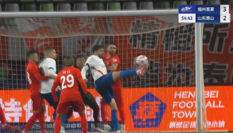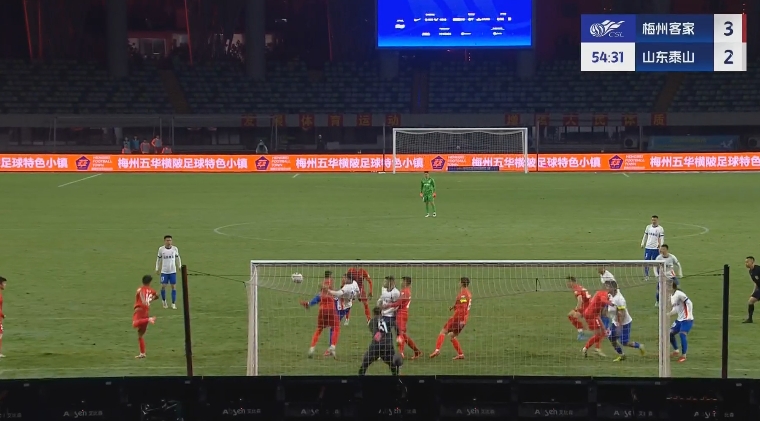 第54分钟,泰山队再扳一球,李源一角球送出助攻,泽卡抢在防守球员身前勾射破门,山东泰山2-3落后梅州客家。↓