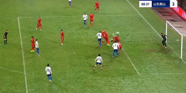 第88分钟,泰山队扳平比分,刘洋左路精准传中,泽卡高高跃起头球破门梅开二度,山东泰山3-3梅州客家。↓