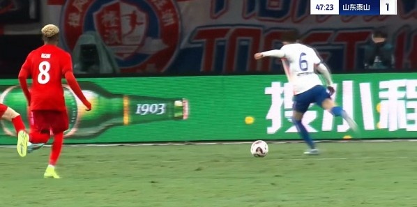 上半场补时第10分钟,泰山队扳回一球,陈蒲底线前传球,卡扎伊什维利停下皮球后转身打门得手,山东泰山1-3落后梅州客家。↓
