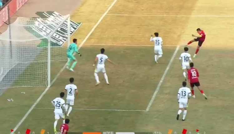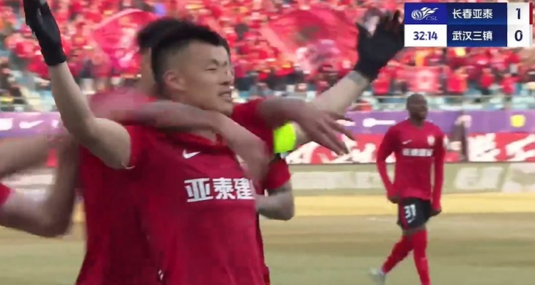 第33分钟,么旭辰抢下球权后下底传中,谭龙凌空斩破门!1-0!长春亚泰先进一球!↓