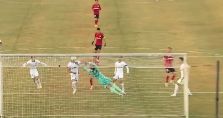 第62分钟,廖承坚突施冷箭,苏祖将球挡出底线。↓