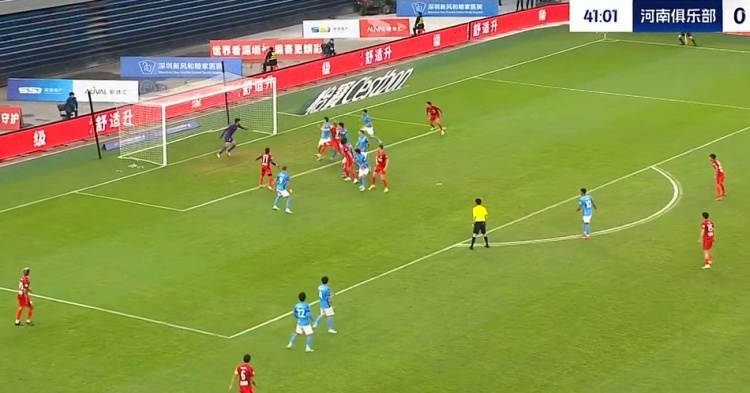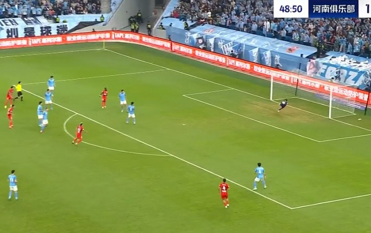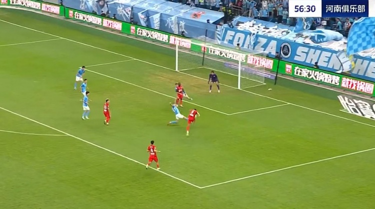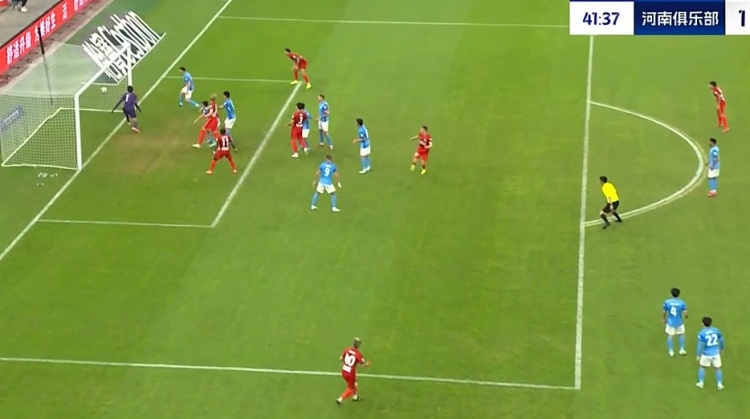第42分钟,河南起高球,卢卡斯-马亚回头望月将球甩进大门!1-0!河南打破场上僵局↓