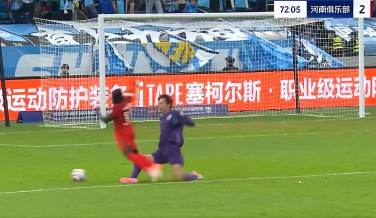 第72分钟,阿奇姆彭反越位成功单刀被季家葆铲倒,主裁给出黄点套餐!纳萨里奥勺子点球潇洒写意!3-0!河南锁定胜局!↓