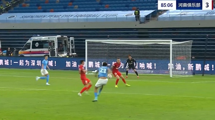 伤停补时7分钟。全场比赛结束,深圳新鹏城1-3河南。