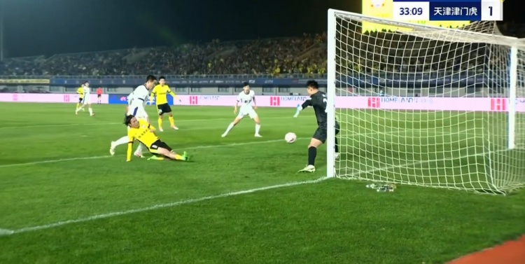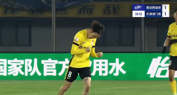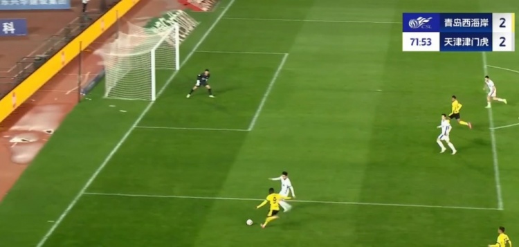张修维外脚背直塞策动+抢点破门,阿齐兹助攻!西海岸扳平!第33分钟,张修维外脚背精彩直塞到右路,阿齐兹低平球传中到门前,张修维迅速插上抢点铲射入网,青岛西海岸1-1天津津门虎!↓