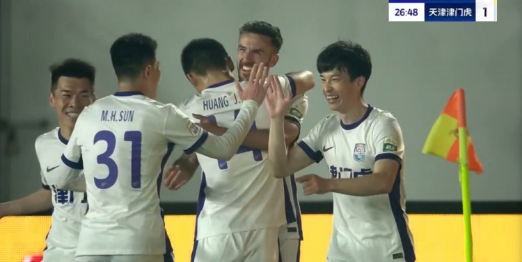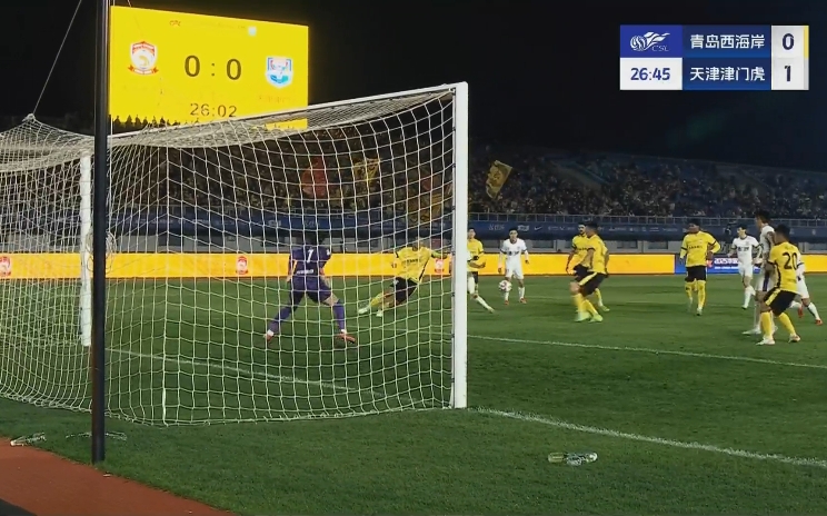 基莱斯5轮5球,巴顿助攻!津门虎领先!第27分钟,巴顿直传分球,基莱斯杀入禁区冷静扣球变向后抽射远角得手,青岛西海岸0-1天津津门虎!↓