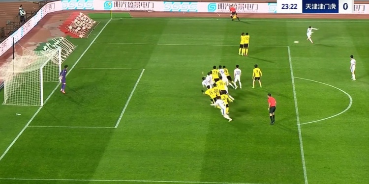 第24分钟,基莱斯主罚任意球直接射门被李昊没收。↓