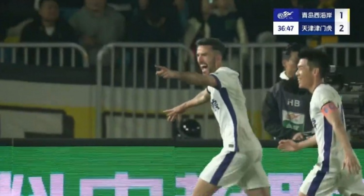 基莱斯5轮轰6球独占中超射手榜第一!津门虎再度领先!第37分钟,阿代米直塞,杨梓豪插上强行传中,基莱斯力压西海岸球员头球破门,青岛西海岸1-2天津津门虎!↓
