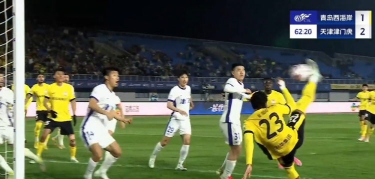 全场比赛结束,天津津门虎客场2-2战平青岛西海岸。