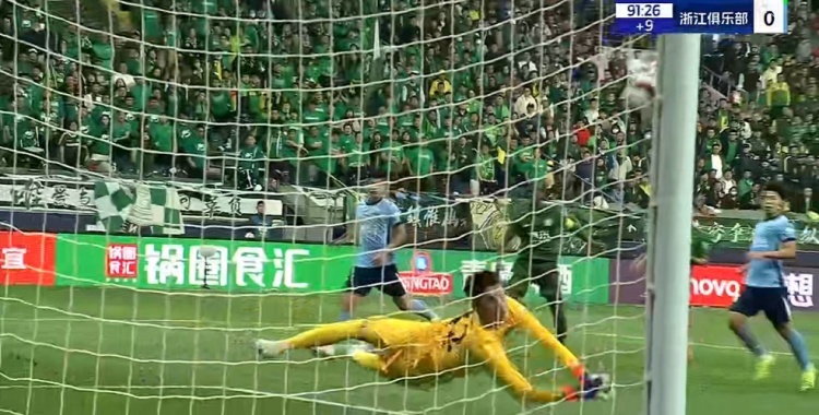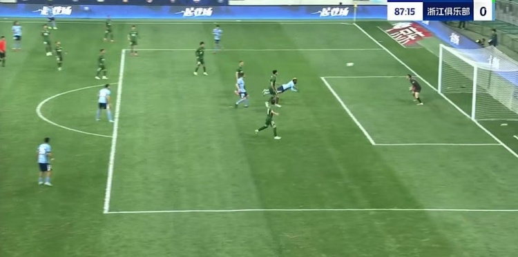 第88分钟,王钰栋右侧下底传中被解围,左侧浙江队再送传中,布彭扎鱼跃头球冲顶破门,但边裁举旗示意越位在先进球无效,比分仍为2-0↓