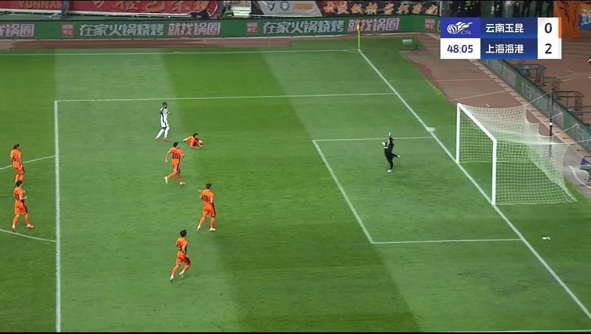 第46分钟,韩子龙左路传中,玉昆禁区内3名球员包抄全部踢空。↓