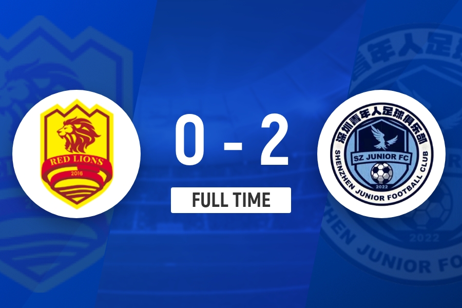 全场比赛结束,深圳青年人2-0深圳红狮。