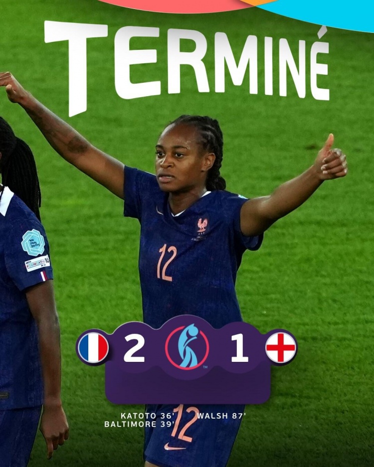 7月6日讯 北京时间7月6日凌晨3:00,女足欧洲杯小组赛D组,法国女足对阵英格兰女足。上半场法国女足由玛丽-安托内特-卡托托和桑迪-巴尔的摩进球,暂2-0领先英格兰女足;下半场比赛尾声阶段,沃尔什为英格兰女足扳回一球,最终法国女足2-1英格兰女足,暂居小组第二位,英格兰女足排在第三。