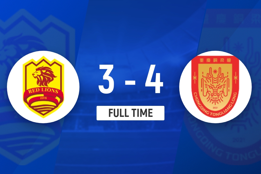 第28分钟,青岛红狮迅速扳平!郝昱丞高速上抢断球后送出直塞,莱昂纳多-阿尔维斯杀进禁区右侧单刀推射破门!青岛红狮1-1扳平重庆铜梁龙↓