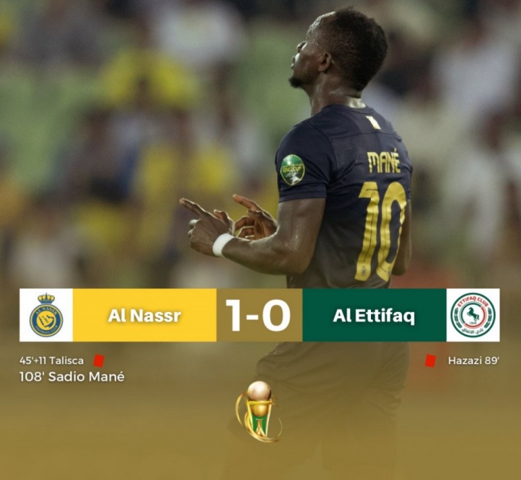 11月1日讯 北京时间10月31日晚上22:45,沙王冠1/8决赛,利雅得胜利主场迎战达曼协作。上半场,C罗抱怨染黄,纳瓦夫伤退,塔利斯卡进球被吹后肘击犯规被直红罚下。下半场,哈扎齐同样直红被罚下。常规时间结束,双方战成0-0。加时赛上半场,达曼协作险些破门;下半场,马内推射建功。全场结束,利雅得胜利1-0达曼协作,晋级八强。