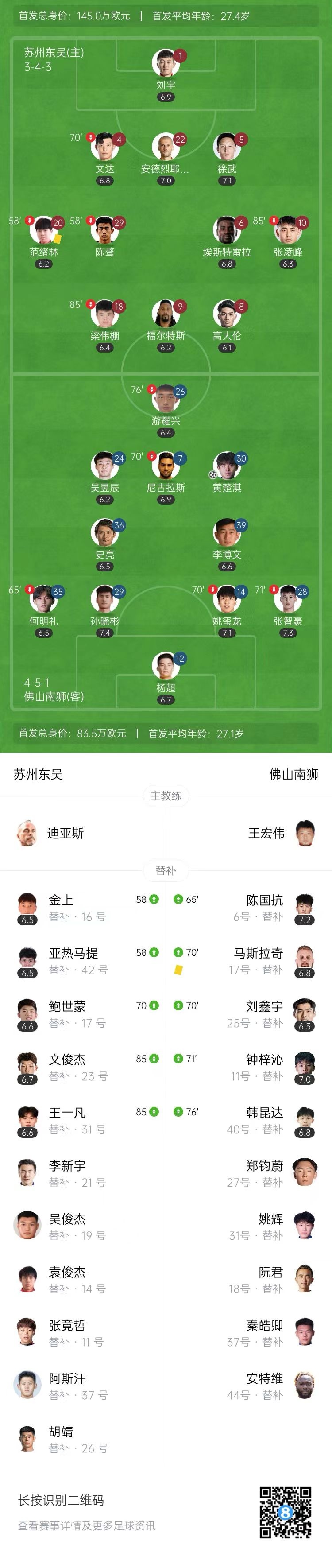 7月19日讯 北京时间7月19日19:00,中甲联赛第17轮,苏州东吴坐镇主场苏州市体育中心体育场迎战佛山南狮。上半场,双方均未制造出破门机会。下半场,福尔特斯近距离打门击中立柱,黄楚淇扫射破门绝杀。全场比赛结束,佛山南狮客场1-0战胜苏州东吴。