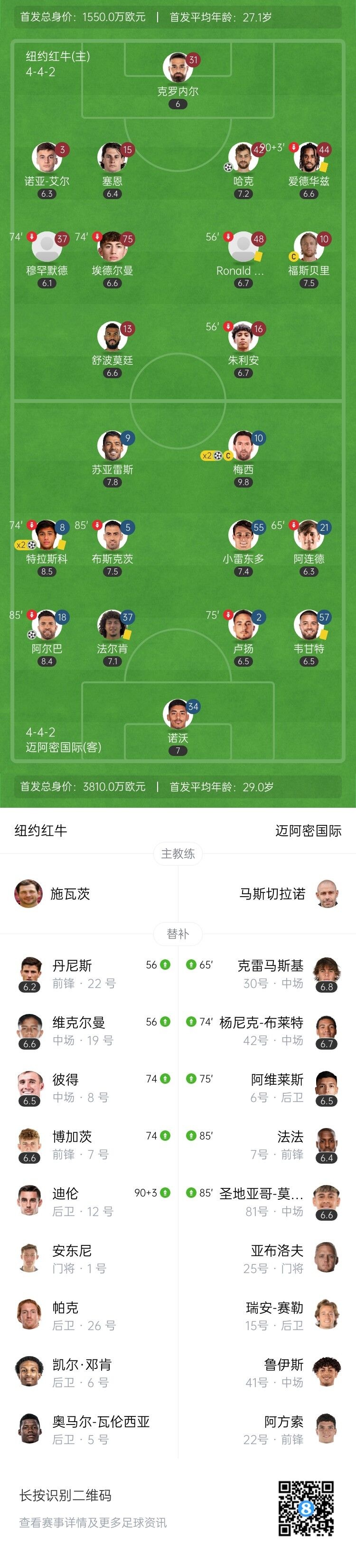 伤停补时9分钟。全场比赛结束,纽约红牛1-5迈阿密国际。