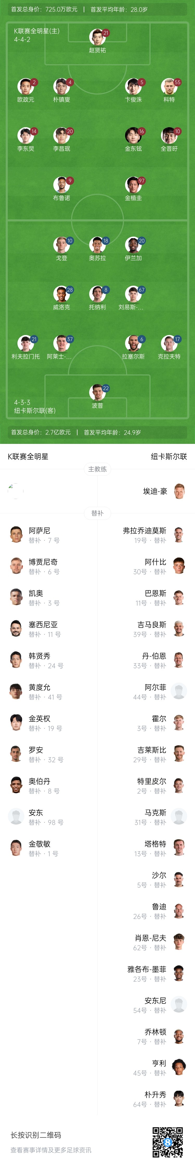 【双方首发及换人信息】