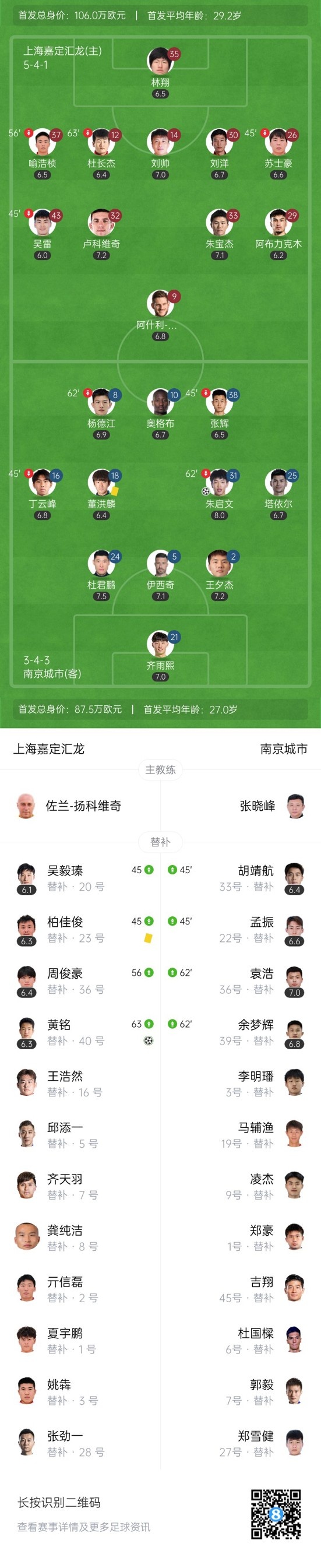 双方首发以及换人信息:
