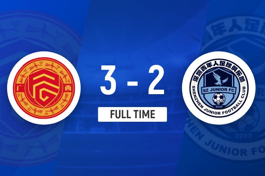 第107分钟,广西绝杀!右路角球开到禁区后点朱越凌空侧钩绝杀,广西平果3-2深圳青年人。↓