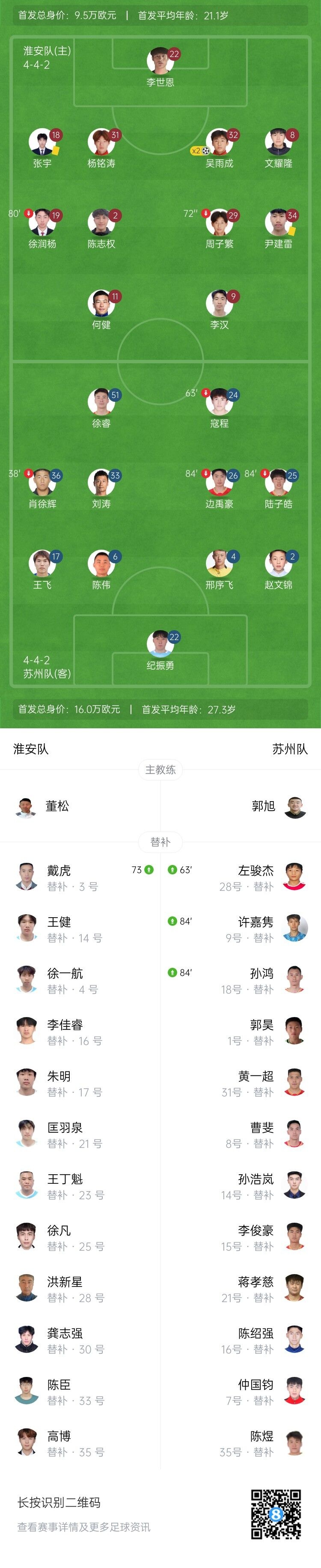 伤停补时4分钟。全场比赛结束,淮安3-0苏州。
