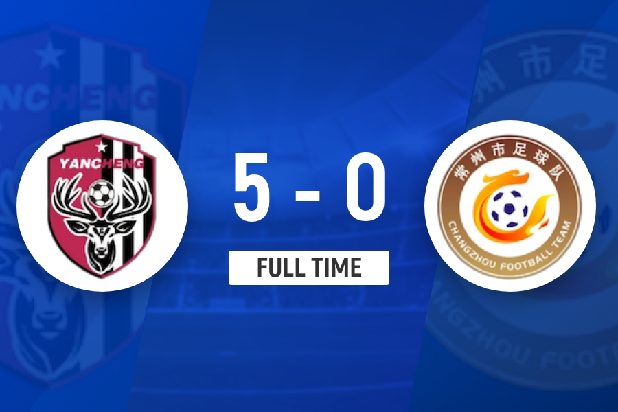 盐城5球领先!第90+3分钟,常州后场防守门户大开,花志成外围一记贴地斩破门,盐城5-0常州!↓