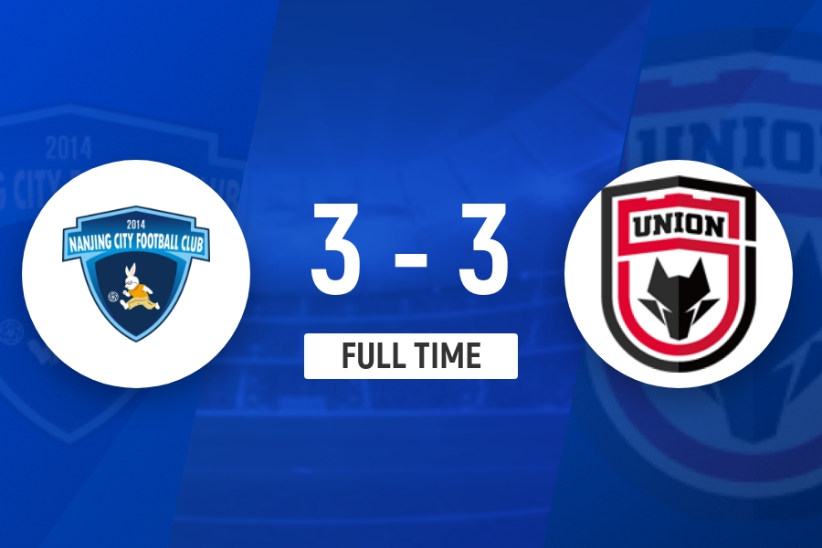 全场比赛结束,南京城市主场3-3战平陕西联合。