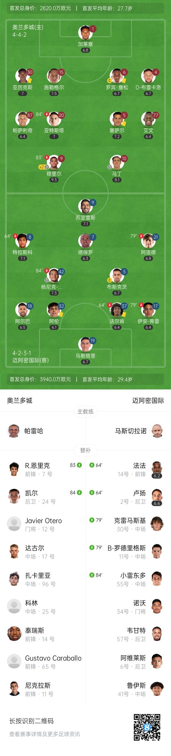 下半场补时6分钟,奥兰多城4-1迈阿密国际。