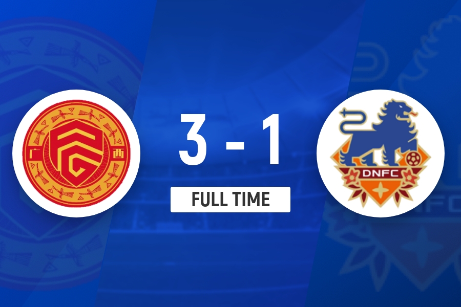 第51分钟,广西前场左侧任意球传入禁区,冯轶梵头球扩大比分,广西平果2-0定南赣联。↓