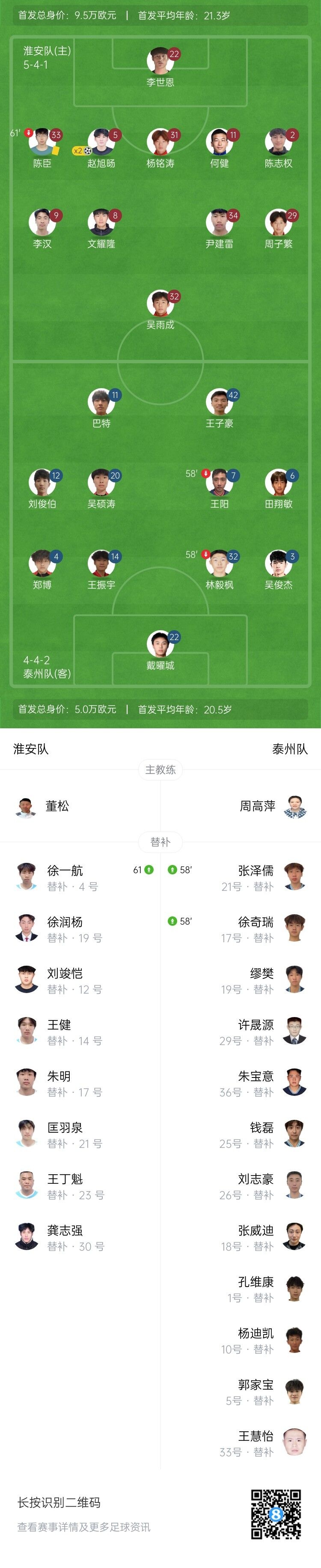 第50分钟,淮安角球开到点球点,赵旭旸冲顶将球砸进大门!2-0!赵旭旸头球双响!↓