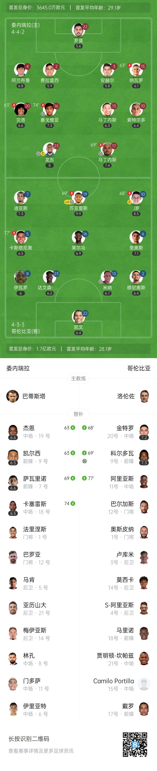 上半场补时4分钟,委内瑞拉2-2哥伦比亚。