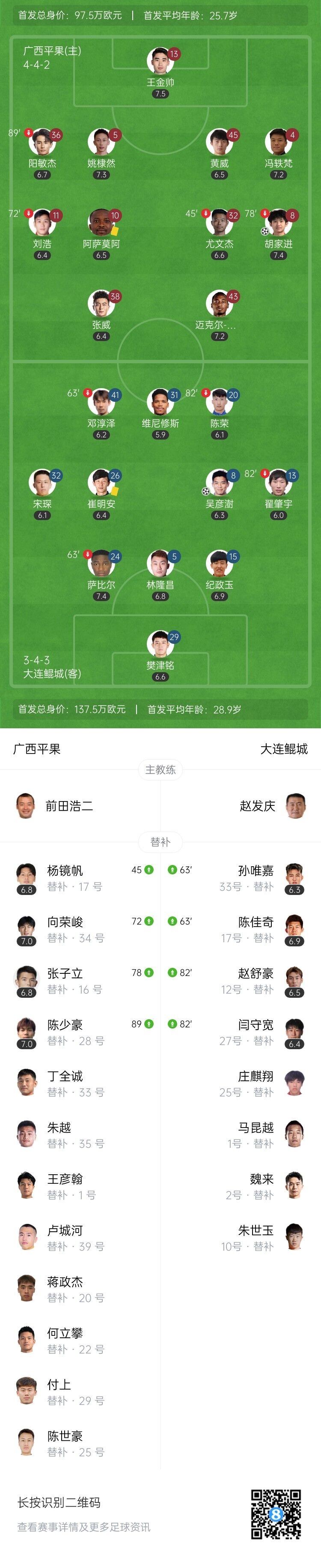 伤停补时8分钟。全场比赛结束,广西平果1-1大连鲲城。