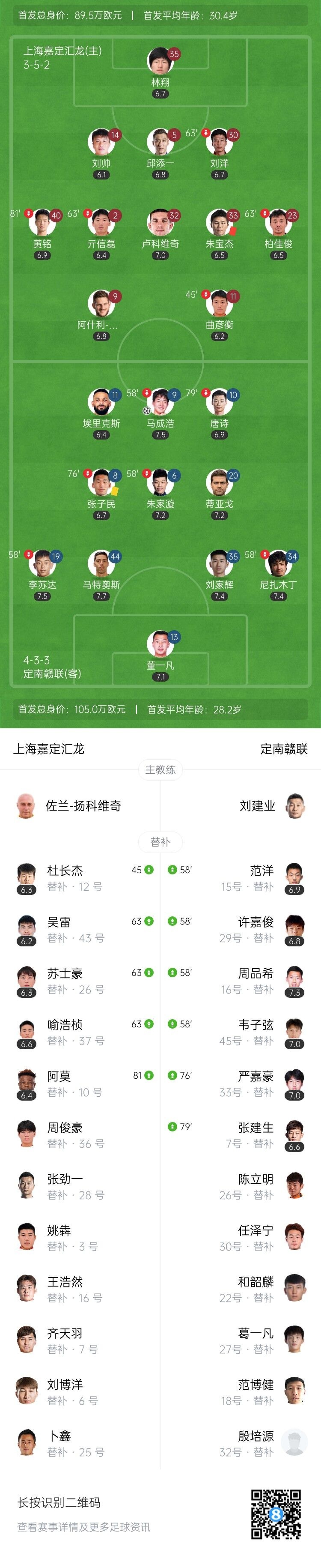 9月20日讯 北京时间9月20日晚上19:00,中甲第23轮,上海嘉定汇龙坐镇上海嘉定体育中心迎战定南赣联。上半场,马成浩破门。下半场,朱宝杰染红,埃里克斯锁定胜局。全场结束,上海嘉定汇龙0-2定南赣联。本场过后,上海嘉定汇龙积26分排名第11,定南赣联积35分暂升至第5。