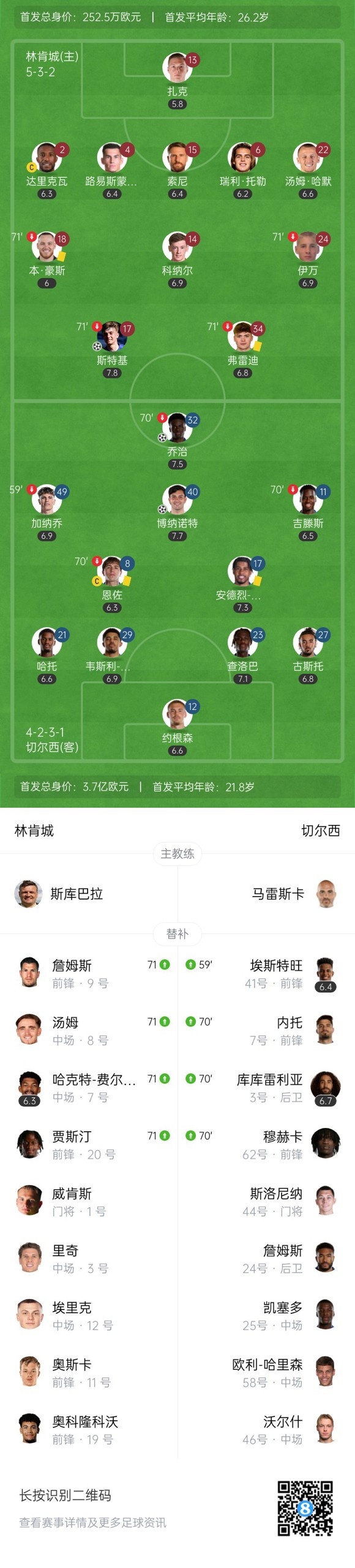 下半场补时4分钟,林肯城1-2切尔西。
