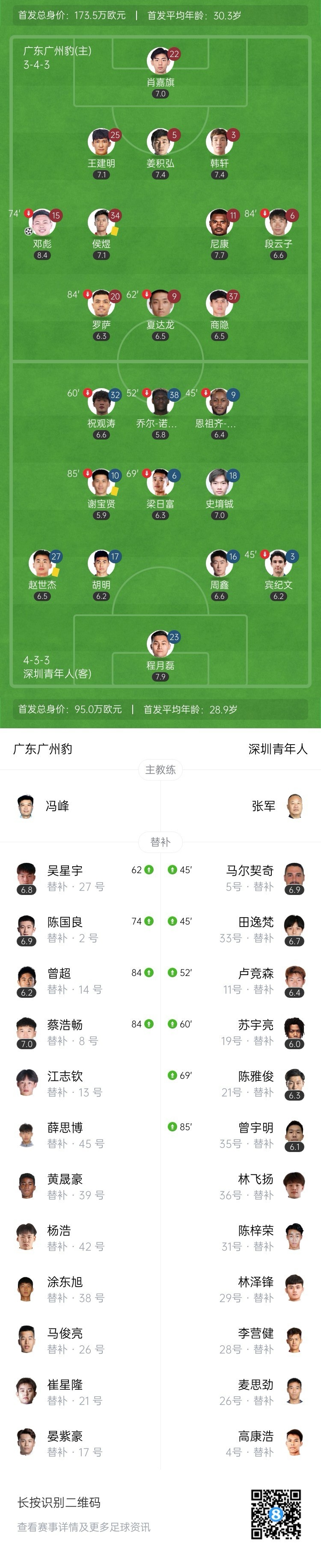 全场比赛结束,广东广州豹主场1-0战胜深圳青年人。